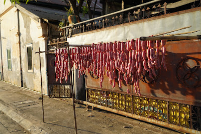 Great food on the floating restaurant. I’ve been enjoying a break from Lao street food, which usually is either rice noodle soup or some grilled protein - most commonly chicken, pork or intestines - or sausages, which presumably include all of these.